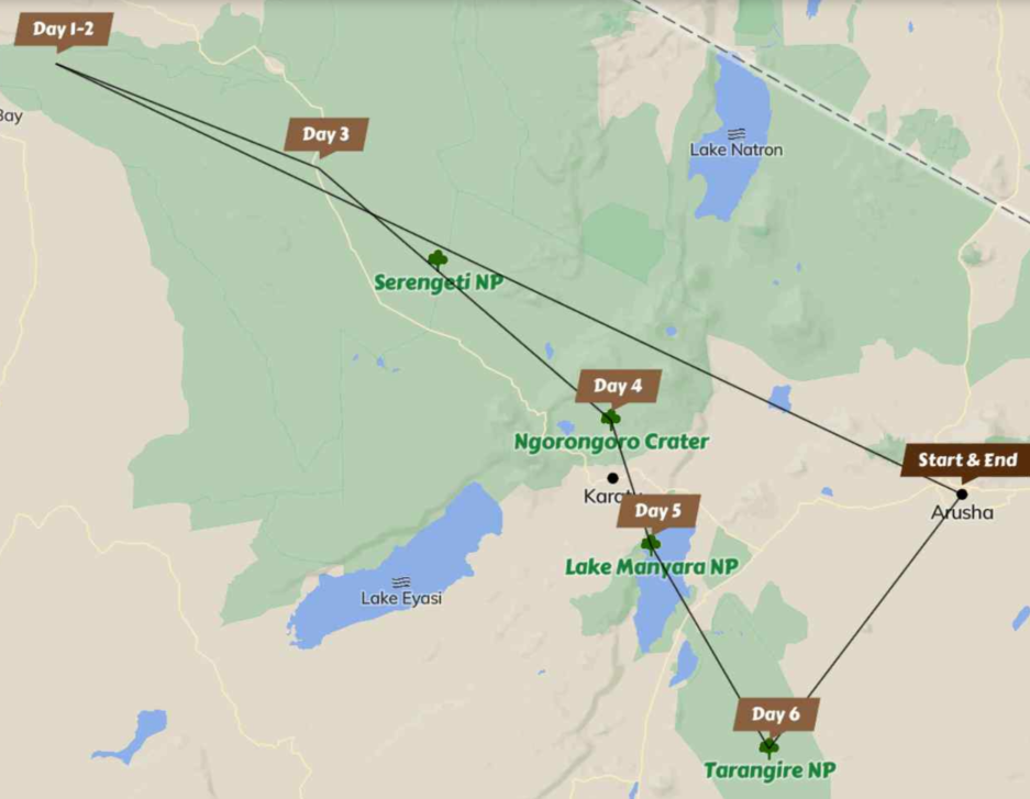 Northern tourism circuit is by far the most popular safari circuit in Tanzania, comprising most of the must-see destinations in the country. If youโre a first-time visitor to Tanzania, this is where you want to be. on this trip you will have an amazing wildlife sighting in the most recommended destination you will be welcomed by one of our profesional guide at Grumeti Airstrip ready for your full day game drive exploring the western corridorย known as Grumeti trying to catch a glimpse of Grumeti river crossing, late evening you will drive to your accommodation for your dinner and overnight.ย
